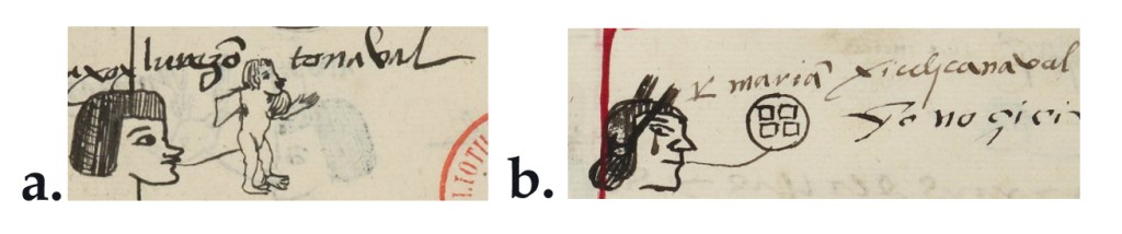Of course, new and very interesting examples of Aztec writing are contained throughout all these documents, including old and new toponyms, spellings of Western and Aztec names, and even some information that confirms that some glyphs formerly considered as hapax, as the chi syllabogram in the spelling of the name Motelchiuhtzin in Codex Telleriano-Remensis 43r, discussed in another post of this blog, were not anomalous but possibly conventional. Besides logosyllabic spellings, the presence of pictographs with alphabetic glosses in Nahuatl will be of great help to ascertain the functioning of this still controversial part of the Aztec communication system.
